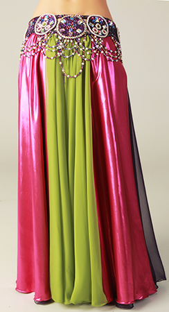 Skirt: double layer full chiffon skirt with two slit in front and pink and green panels. Length: 39".