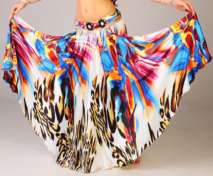 Skirt: full double layer skirt (bottom layer yeallow chiffon) with two slits in front. Length: 39"